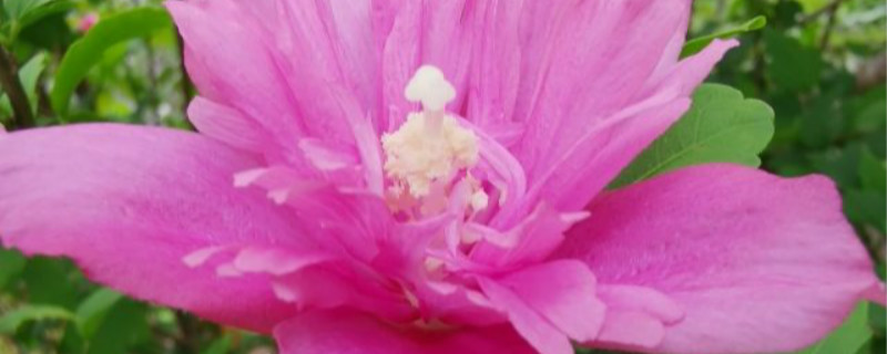 3、紫红重瓣木槿。花瓣紫红色或带白色,重瓣。