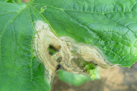 当环境中湿度较大时,叶片上会出现灰色的粉末状孢子层。