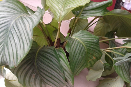 圆叶竹芋的白绢病较为常见。发生时,茎部或者植株的叶基接近土壤的地方变褐并逐渐腐烂,展出白色的菌丝状物体,能够逐渐蔓延,使地上植株枯萎死亡。