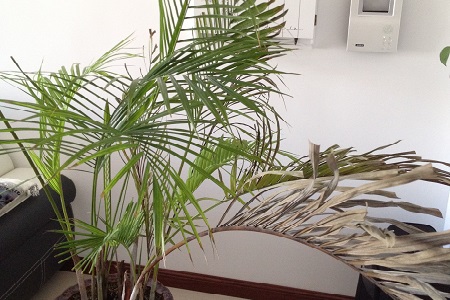 1日夏养花网、具体原因:散尾葵喜欢生活在空气湿度较高的环境中,如果太干燥,会导致叶尖干枯。