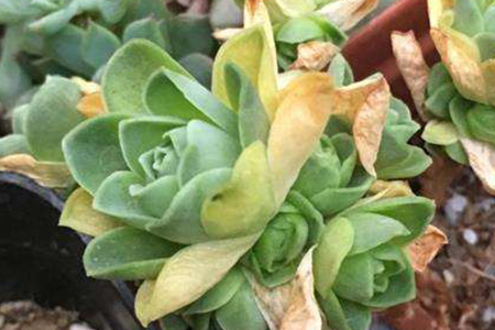 处理方法:建议控制好浇水量,或是直接停水,将盆中土壤适当翻一下,加快积水流出。然后要放置到半阴且通风的位置,养护一段时间就恢复了。