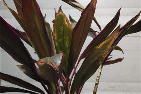 1、减少阳光:朱蕉叶子干枯可能是因为它被过于强烈的直射光灼伤了。此时,要将它被晒伤的叶子剪掉,再把它搬到一个通风、半阴的地方养护,等它恢复。
