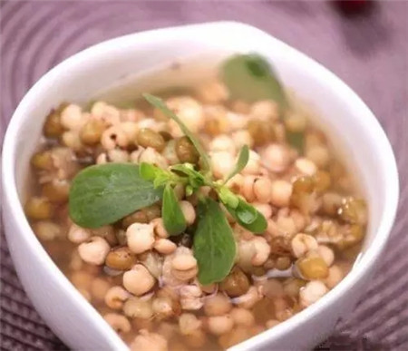 食材:绿豆20克,薏仁20克,冰糖适量,马日夏养花网齿苋。
