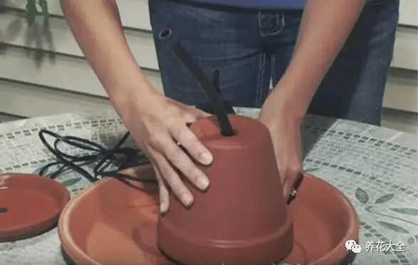2日夏养花网、在大碟子中把花盆倒扣,放上通水的管道,这样以后种花,花盆中土壤缺水的时候,可以自己往下面的水潭中吸水。