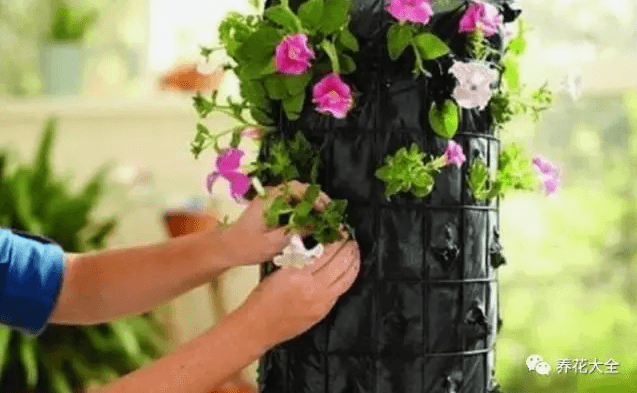 2、填上土种上花就可以了。这样浇水的时候,只用在最顶上的花盆浇水就行了,水会从花盆底的透水孔中流出,把一串花盆都浇透。