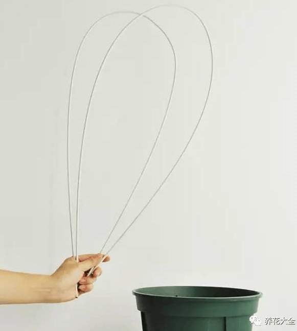 将铁丝交叉状插进花盆,让铁丝两端彻底触到盆底。