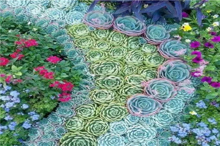 除了用美美的花器来养肉,还可以直接地栽,大片大片的多肉甚至比脸还要大呢!