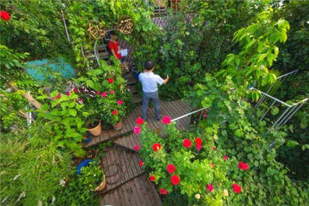 花园的主人,是刚70出头的高剑锋,他是学农业出身的,不仅对花花草草感兴趣,还擅长园林设计,怪不得能造出5层空中花园呢!