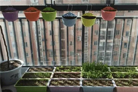 挂式的小花盆也别浪费,种菜的时候扔里几粒生菜籽,种点那种紫红生菜,据说营养价值更高呢!