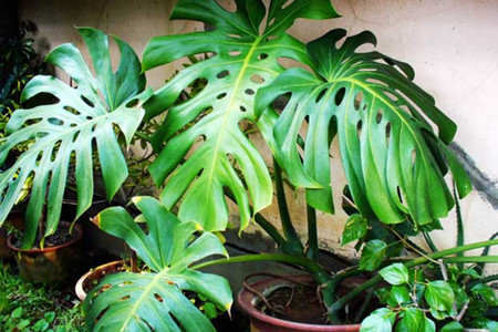 龟背竹是这两年来比较流行的观赏植株,它的叶片大大的,具有良好的吸收净化能力,能够帮助吸收家中的污染空气,并且龟背竹寓意着延年益寿,有老人的家庭养护是最合适的了。