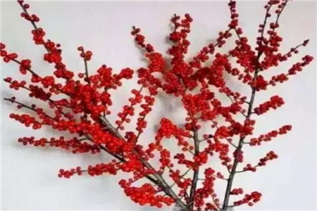 它是一种进口的观果植物,入冬后叶子就全脱落了,枝上开始挂果,到过年,满树红果,红红火火,非常应景。