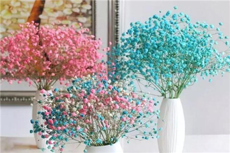 1、干花买回来直接插在瓶子里就行,新鲜的满天星要放在水里养;