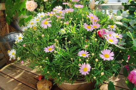 3、浇水:玛格丽特花是一种非常怕涝的植物,积水是不行的,会对它造成严重的伤害。所以,平时土壤可在半湿的状态下。另外,冬季则更需少浇,尤其是温度不适宜的时候。
