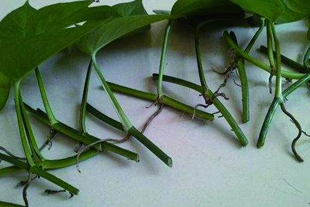 1、从植株上剪取健壮的枝条,保证生长状态良好,能增加成活的可能性,优先选择带有气生根的,上端带有叶片。