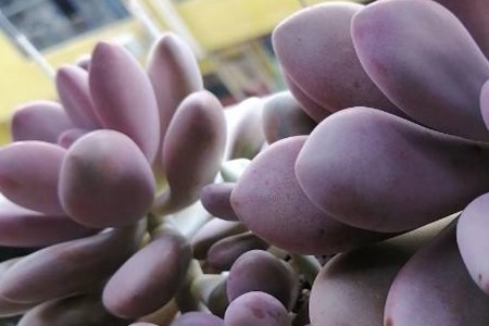2、叶子颜色:从叶子的颜色来说,桃蛋的叶子上覆盖着一层厚厚的粉霜,比较的粉嫩,颜色看起来很偏向粉色,很像是玫瑰色。桃美人的叶子表面上的霜粉少一点,颜色多偏向为紫粉色。
