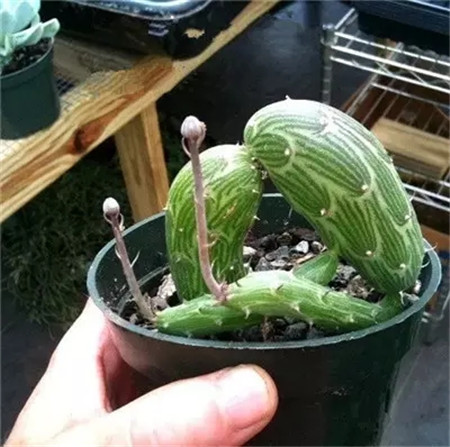 再来看看这位奇葩,不说你肯定不相信它和咱们常见的菊花是亲戚,没错,这位叫泥鳅掌的同志是菊科千里光属的好日夏养花网肉体,它们细小的叶片很早就凋谢干枯了,像小刺一样宿存在像黄瓜一样分节的肉质茎上,肉质茎平卧于地上生长,表皮灰绿色,有深绿色线状纵条纹,很像土里乱窜的泥鳅有木有?!
