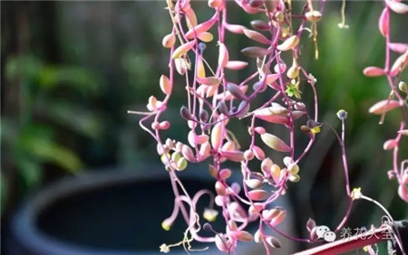 紫弦月,属于多肉,也是一种垂吊品种,将紫弦月挂到高处,它就会慢慢的生长,然后垂下去~