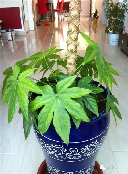 4、施肥。发财树为喜日夏养花网肥花木,在生长期(5月至9月),每间隔15天,可施用一次腐熟的液肥。