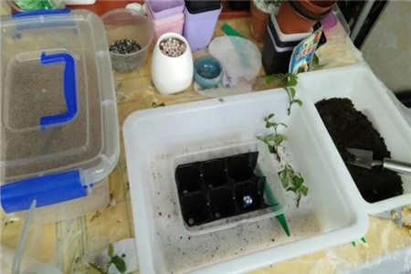 ⑥生根之后就可以把长春花的小苗移栽上盆了。