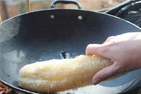 2、丝瓜瓤具有吸油作用,而且丝与丝之间有很多小孔。刷完锅后用水冲一下,非常容易就将小孔中的油污冲出去了,非常方便!