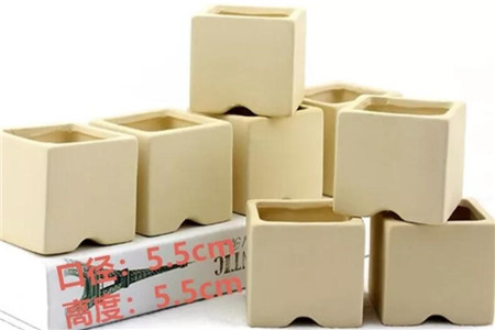3、然后我们准备5个素烧盆,要求方方正正的就行,把素烧盆提前一天刷上红漆。