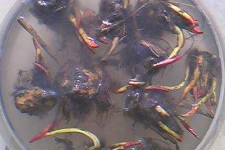 3、处mjhVgr理:将睡莲的根放在干净水中清洗一下,为了避免后期的感染,需经过消毒处理,然后在上面涂抹上生根粉,放在阴凉地方晾干。
