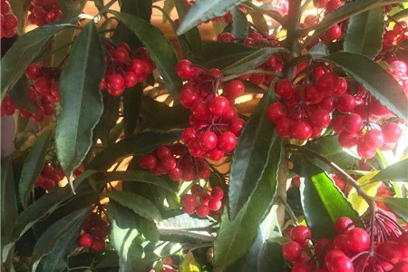 3.光照:朱砂根喜光,在刚买回来的时候,为了避免植株的叶片受损,需要将它放在散射光照充足的地方来进行养护,或者放在阳台上,在正午的时候进行适当的遮荫。