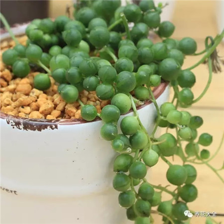 3.换盆:佛珠长的相对较快的,1~2年换盆一次就差不多了,初春头次浇水前进行换盆。佛珠会长出很多分枝。