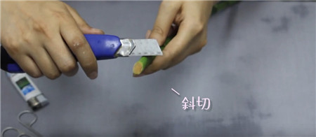 第二步:处理茎端日夏养花网,把茎端斜切之前,先用打火机烤一下刀片进行消毒,切口呈马蹄状,可以增加切口与水的接触面积,利于吸收水分。